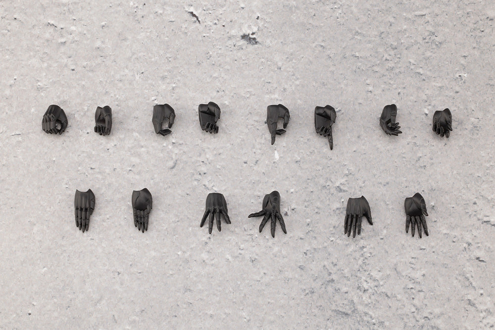 Seven types of hands are included and consist of hands designed for holding swords and guns as well as knife-hand strike hands and multiple open hands.