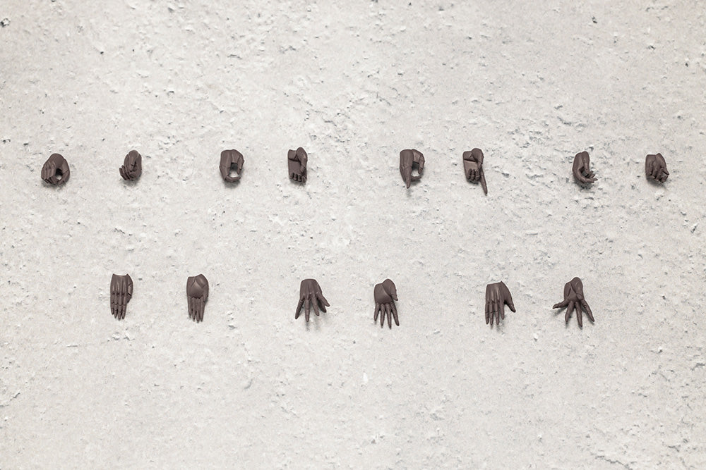 Seven types of hands are included and consist of hands designed for holding swords and guns as well as knife-hand strike hands and multiple open hands.